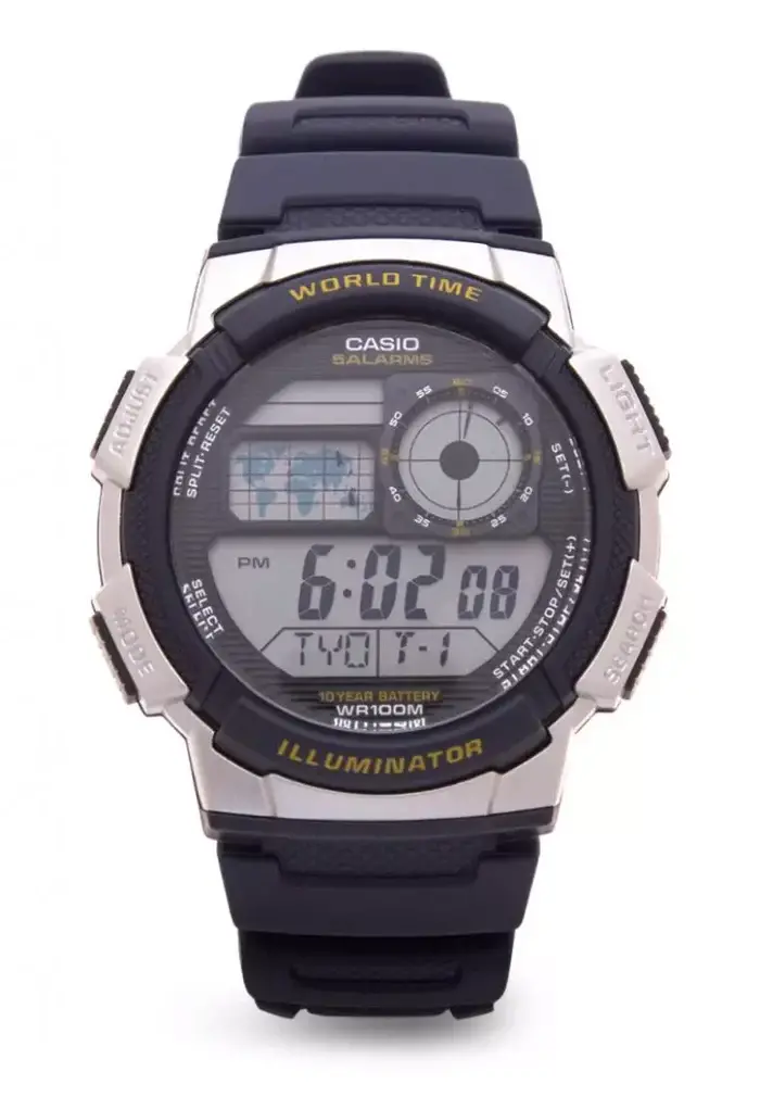 The Casio AE-1000W-2AVDF Digital Watch is the perfect combination of style, functionality, and durability. Designed for the modern man who leads an active lifestyle, this watch features a bold black and blue color scheme that adds a sleek, sporty look to any outfit. With a highly functional digital display, the AE-1000W-2AVDF provides quick access to time, date, world time across 48 cities, and essential features like a stopwatch and countdown timer, making it ideal for travelers, athletes, or those who want precise time management in every moment.