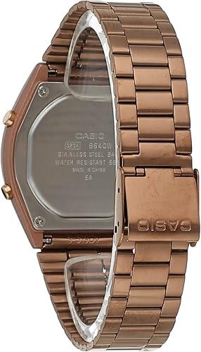 The Casio B640WC-5ADF is a perfect blend of retro charm and modern functionality. This stylish digital watch features a unique rose gold-tone stainless steel case and bracelet, offering a sleek and fashionable look that stands out. The watch boasts a clear digital display that includes essential features such as a daily alarm, stopwatch, countdown timer, and an LED backlight for easy readability in low-light conditions. The Casio B640WC-5ADF is water-resistant up to 50 meters, making it suitable for everyday wear, including hand washing and light water activities. With its vintage-inspired design and reliable digital performance, this timepiece is an ideal accessory for those who appreciate both style and practicality. Embrace the timeless appeal of Casio with the B640WC-5ADF and add a touch of elegance to your wrist.