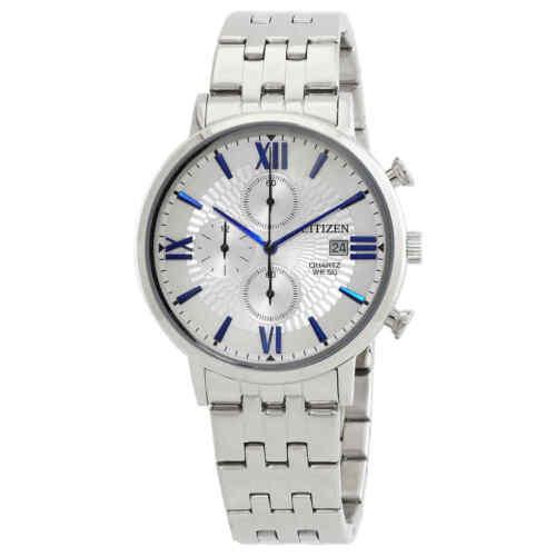 The Citizen AN3610-71A is a refined chronograph watch that embodies elegance and functionality, perfect for the modern gentleman. This timepiece features a sleek stainless steel case and bracelet, offering a polished and professional look. The white dial is beautifully accented with silver-tone hands and markers, providing a clean and sophisticated appearance. The watch includes three sub-dials for chronograph functionality, allowing you to track elapsed time with precision. Powered by reliable quartz movement, the Citizen AN3610-71A ensures accurate timekeeping. The mineral crystal lens protects the dial, enhancing the watch’s durability. Water-resistant up to 50 meters, this watch is suitable for everyday wear, including hand washing and brief water exposure. Whether you're in the office or attending a formal event, the Citizen AN3610-71A is a versatile accessory that adds a touch of class to any outfit.