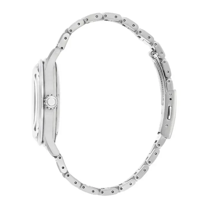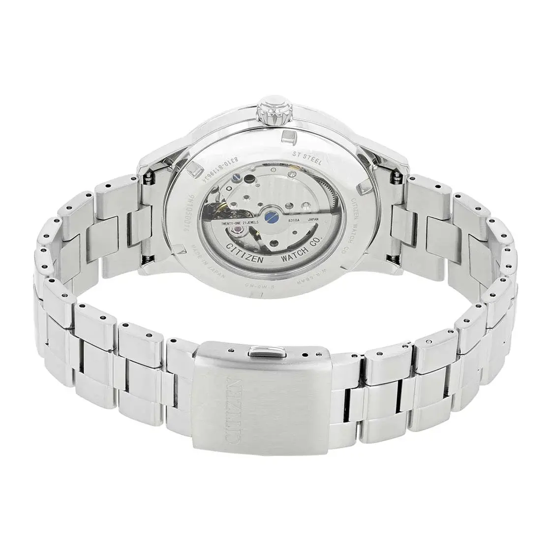 The fixed bezel of the CITIZEN NK0000-95E enhances its minimalistic design, keeping the focus on the clean and easy-to-read dial, which also features a date function for added convenience. The 43mm case size offers a bold yet balanced appearance that’s easy to read at a glance, while the fold-over clasp with push button ensures a secure and comfortable fit for wrists measuring 160mm to 210mm. The 22mm band width adds strength and presence to the watch, providing a stylish, comfortable fit on your wrist.