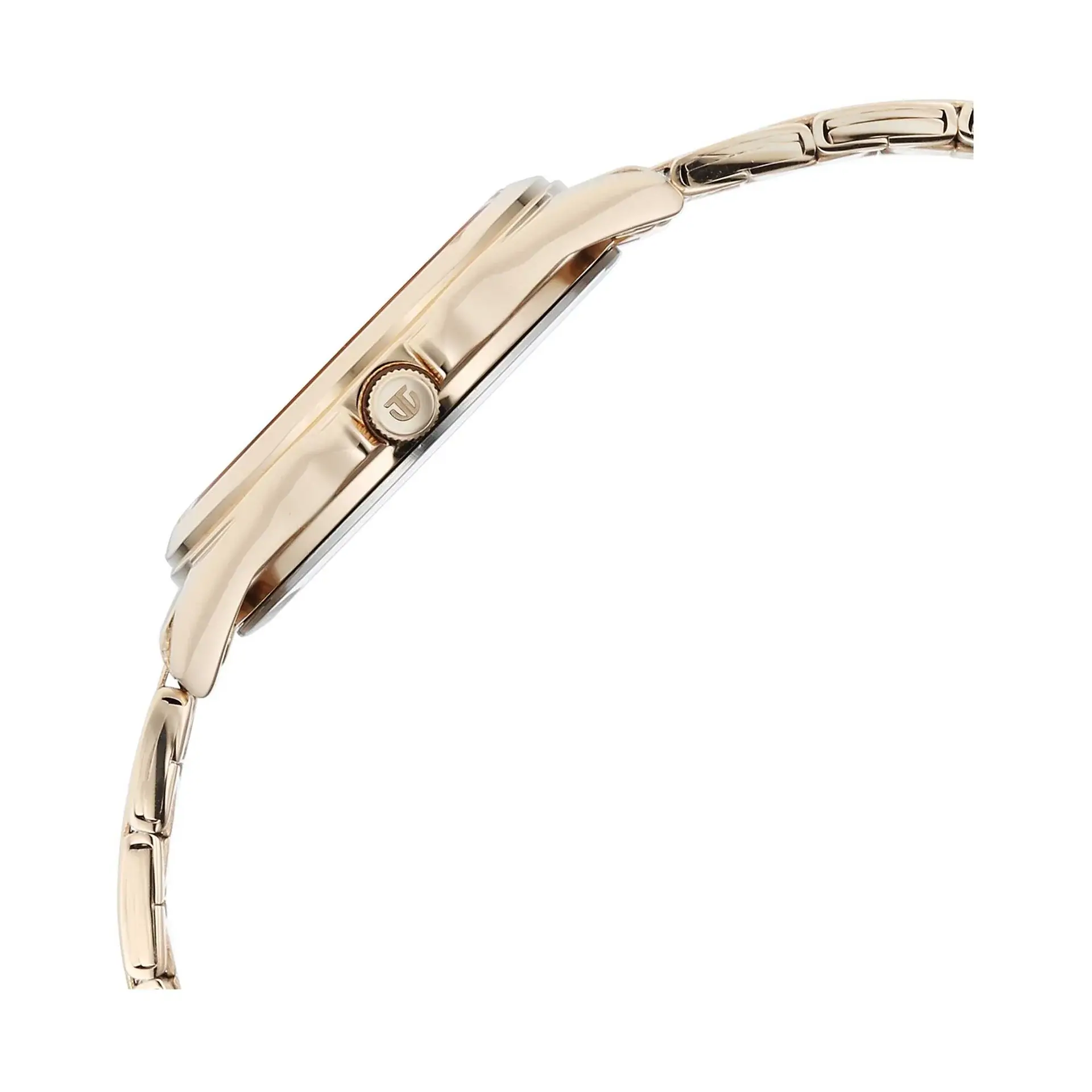 At just 32 mm across and 7.65 mm thick, it sits delicately on the wrist without sacrificing presence. The coordinating rose-gold stainless steel bracelet adds polish, blending seamless wearability with refined detail.